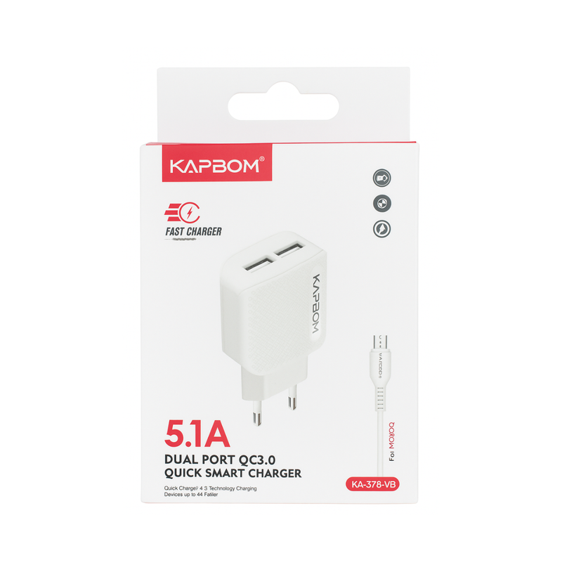 Carregador de Celular KAPBOM 2 USB 5.1A KA-373VB – Carga Rápida e Segura